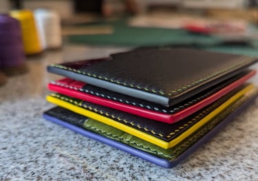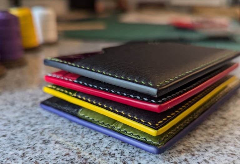 Choix des couleurs de fils et de teintures tranches, choix des cuirs, etc...